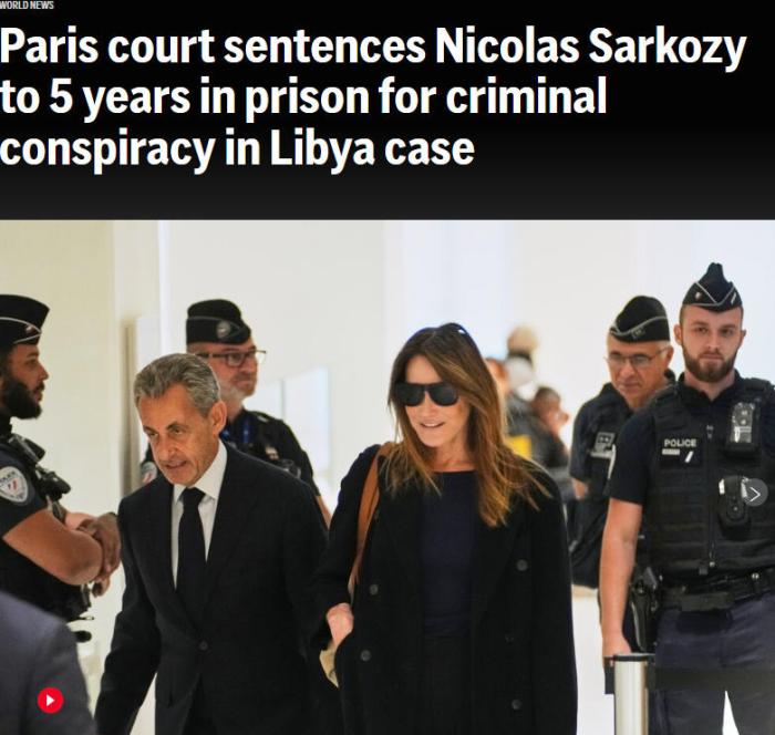法国前总统萨科齐因“强迫阴谋”被判处五年徒