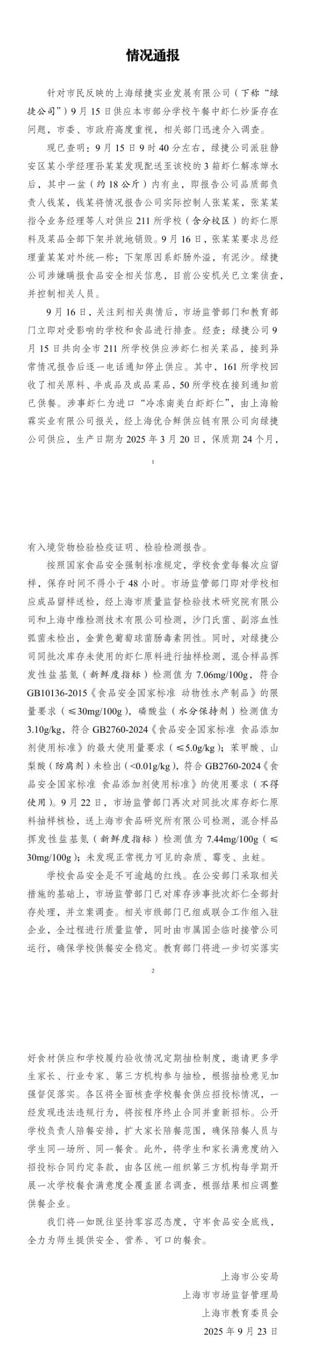 China.com在9月23日报道说,根据微信公共帐户“上海市场监督”,9月23日晚上,上海公共安全局和其他三个部门发出了有关“在某些学校午餐中有虾炒鸡蛋的问题”,如下:图片来源:图片来源:图片: [收费编辑:Wu Jiang]